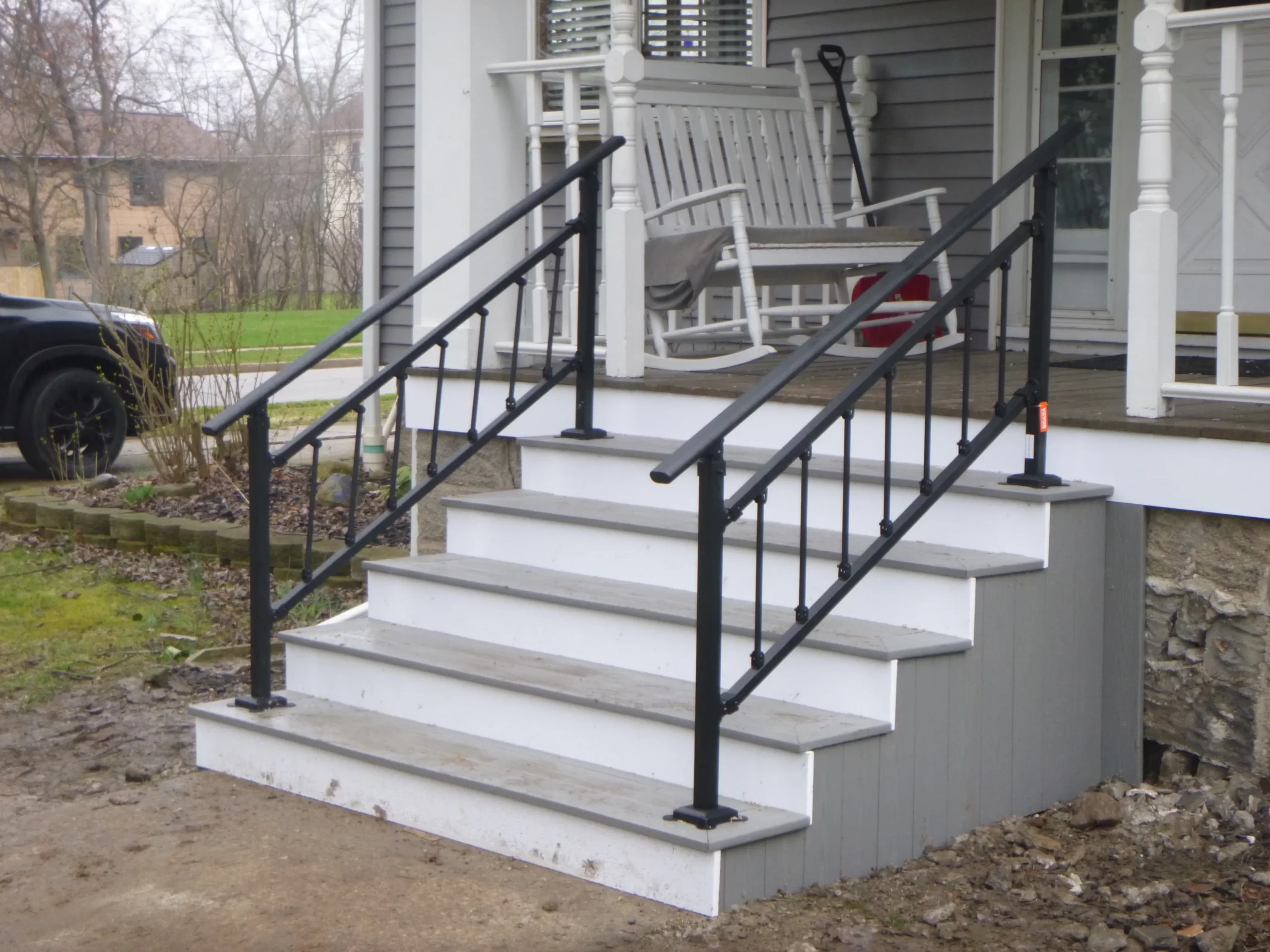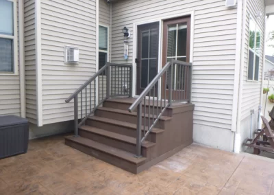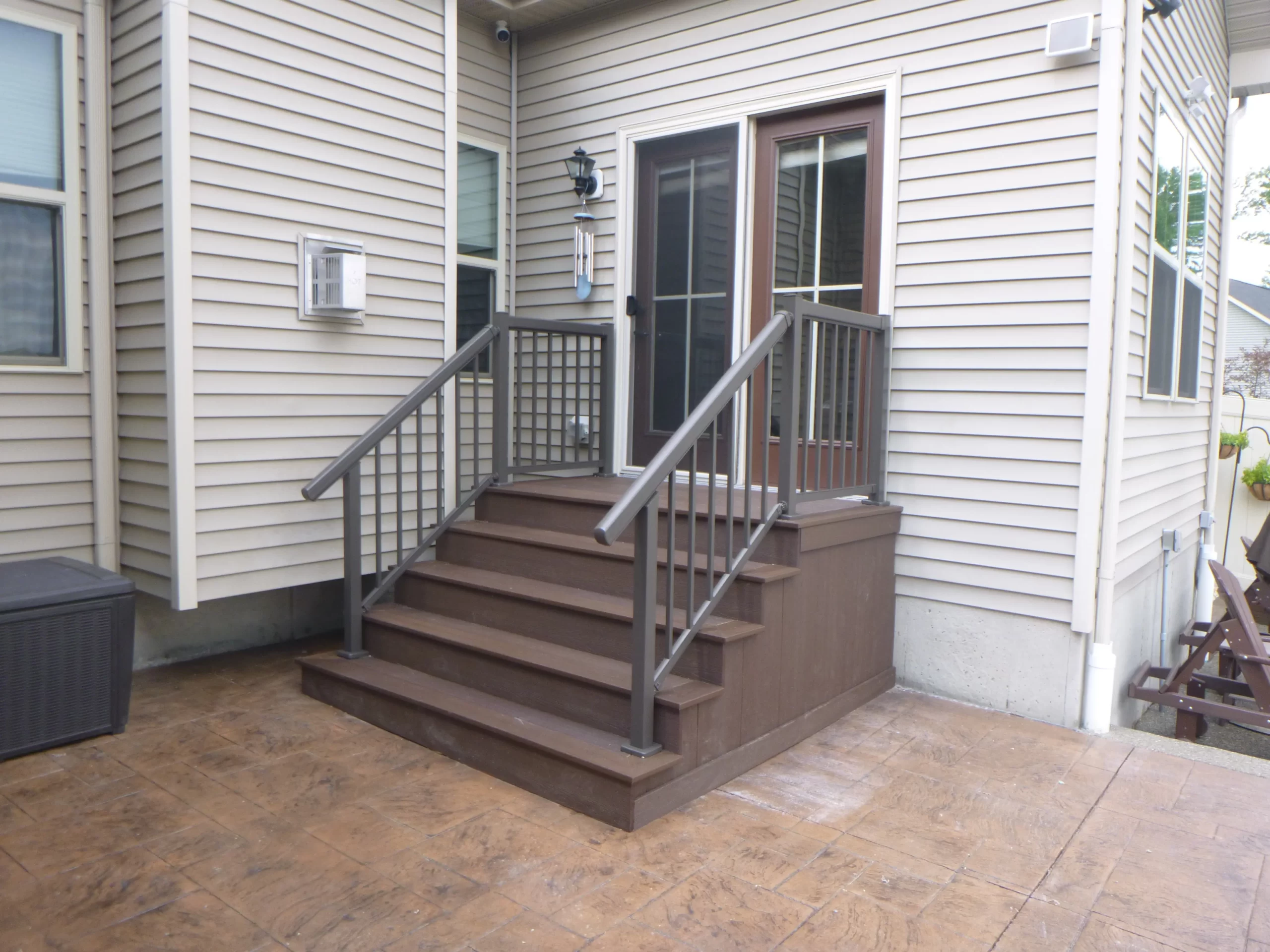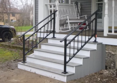 Railings Maintenance free railings, aluminum railings in black, brown, vinyl, white color; full view glass panel railings. After After After After Before After Before After Before After Aluminum Railings In Progress Aluminum Railings After Before After Before After Before After Before Before After Glass Railings Completed Vinyl Railings with Metal Spindles During Trex railings with complete cocktail top rail Before After